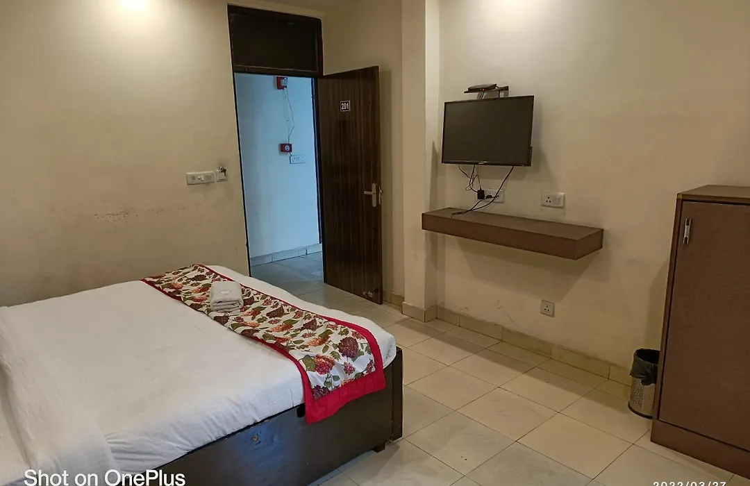 Das 3-Sterne-Hotel O Stay Happy Neu-Delhi mit klimatisierten Zimmern, das ungefähr 6 Kilometer vom Qutb Minar entfernt liegt.